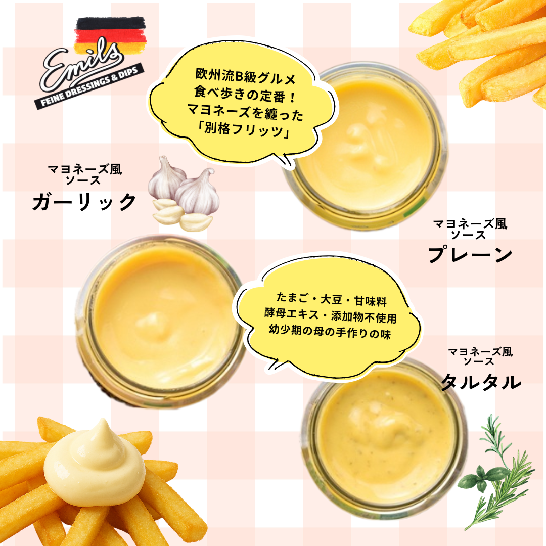 | 原材料名 | 有機菜種油、有機濃縮還元リンゴ果汁、有機アーモンド、有機白ワインビネガー、有機マスタード(有機カラシナ種子、有機リンゴ酢、岩塩)、海塩、有機エストラゴン、有機マジョラム、有機チャービル、(一部にりんご・アーモンドを含む) |