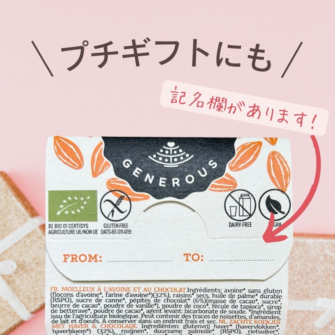 ●チョコチップとレーズンを加え、動物性原料を使わずに焼き上げています。